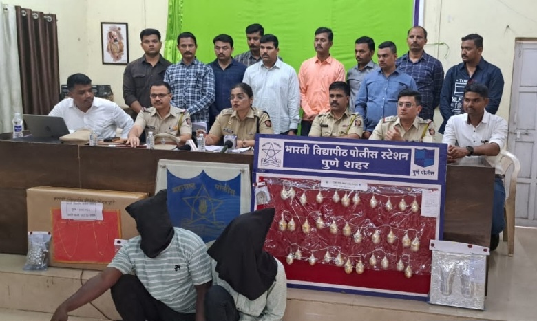 हिंदजागर न्यूज प्रतिनिधी – गुन्हेगार मित्राच्या जामिनासाठी ठाणे येथून अट्टल सोनसाखळी चोरटयास बोलावून पुण्यात विश्रांतवाडी , येरवडा , भारती विद्यापीठ आणि कोंढवा पोलिस ठाण्याच्या हद्दीत सोनसाखळी चोरी झाल्याच्या प्रकरणातील मुख्य सुत्रधारास भारती विद्यापीठ पोलिसांनी अटक केली आहे.त्याच्याकडून पाच गुन्हे उघडकीस आणण्यात आले असून पोलिसांनी 1 लाख 15 हजार रूपये किंमतीचे दागिने जप्त केल्याची माहिती पोलिस उपायुक्त स्मार्तना पाटील यांनी पत्रकार परिषदेत दिली आहे.