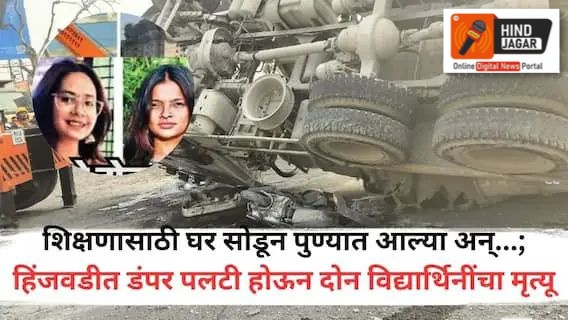 HindJagar News – P. C. M. C – पुण्यात गेल्या काही दिवसांमध्ये अपघाताच्या मोठ्या घटना समोर येत आहेत. अशातच हिंजवडीत झालेल्या एका घटनेमध्ये दोन विद्यार्थीनींचा हकनाक बळी गेल्याची संतापजनक घटना घडली आहे हिंजवडीत भरधाव वेगात निघालेला रेडिमिक्स डंपर वळणावर आला आणि वाहनावरील चालकाचं नियंत्रण सुटलं. यामुळं रेडिमिक्स डंपर पलटी झाला, पण दुर्दैवाने त्याचवेळी रेडिमिक्स डंपरखाली शेजारून जात असलेली दुचाकी दबली गेली, दुचाकीवरील दोन विद्यार्थिनींचा जागीच दुर्दैवी मृत्यू झाला आहे. क्रेनच्या साह्यानं रेडिमिक्स डंपर हटविण्यात आला. चालकाला हिंजवडी पोलिसांनी ताब्यात घेतलं असून विद्यार्थिनींची ओळख पटवण्यात आली आहे. या दोघींही पुणे शहरामध्ये शिक्षणासाठी आल्या असल्याची माहिती पोलिसांनी दिली आहे.