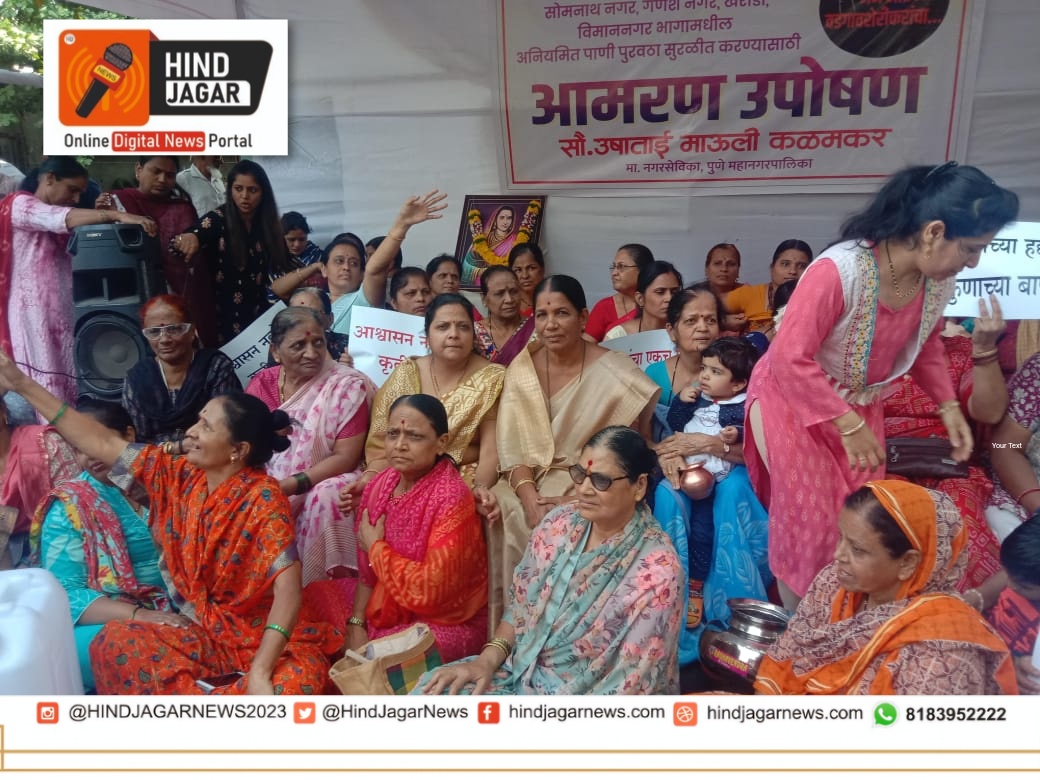 HindJagar News – Pune – वडगाव शेरी परिसरात गेल्या काही महिन्यांपासून अपुरा आणि अनियमित पाणीपुरवठा होत आहे. याबाबत नागरिकांनी वारंवार पाणीपुरवठा विभागाकडे तक्रारी केल्या तरी, पाण्याची समस्या अद्याप सुटली नाही.त्यामुळे सोमनाथनगर परिसरातील महिला आणि नागरिकांनी पाण्यासाठी आंदोलन सुरू केले आहे.